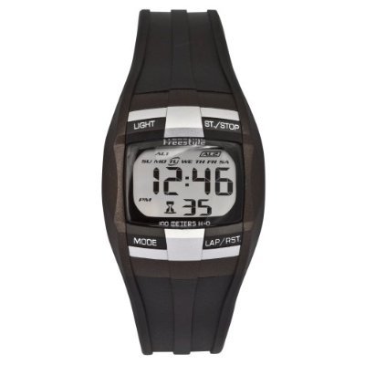 With a stopwatch and two alarms, the Freestyle Midsize Huckfin Watch is built for adventure and fashionable everyday use. Made with a universal look that shifts easily from home to the office to the gym, this unisex timepiece is crafted with a durable plastic case and bezel, and it features a sporty black polyurethane strap with an adjustable buckle. The dial features a digital display with a date calendar and preset timer displays. Easy-to-use push buttons are located above and below the dial, with controls for mode, start/stop, lap/reset, and backlight functions. Featuring quality quartz movement, this Freestyle watch is water resistant to 330 feet (100 m).List Price : $60.00