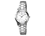 New Casio LTP1275 3-Hand Analog Ladies Fashion White Face Silver Metal Band Watch Mineral Glass